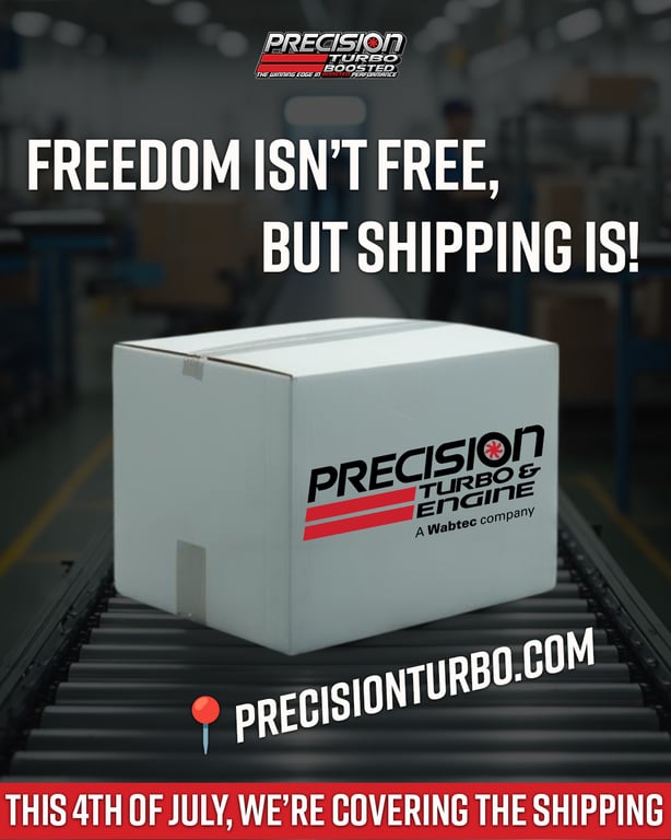 This 4th of July, we’re giving you something to celebrate — FREE Ground Shipping on everything across our website. That’s right — from turbochargers and boost control products to Precision Turbo apparel and gear, every item qualifies for this limited-time offer.