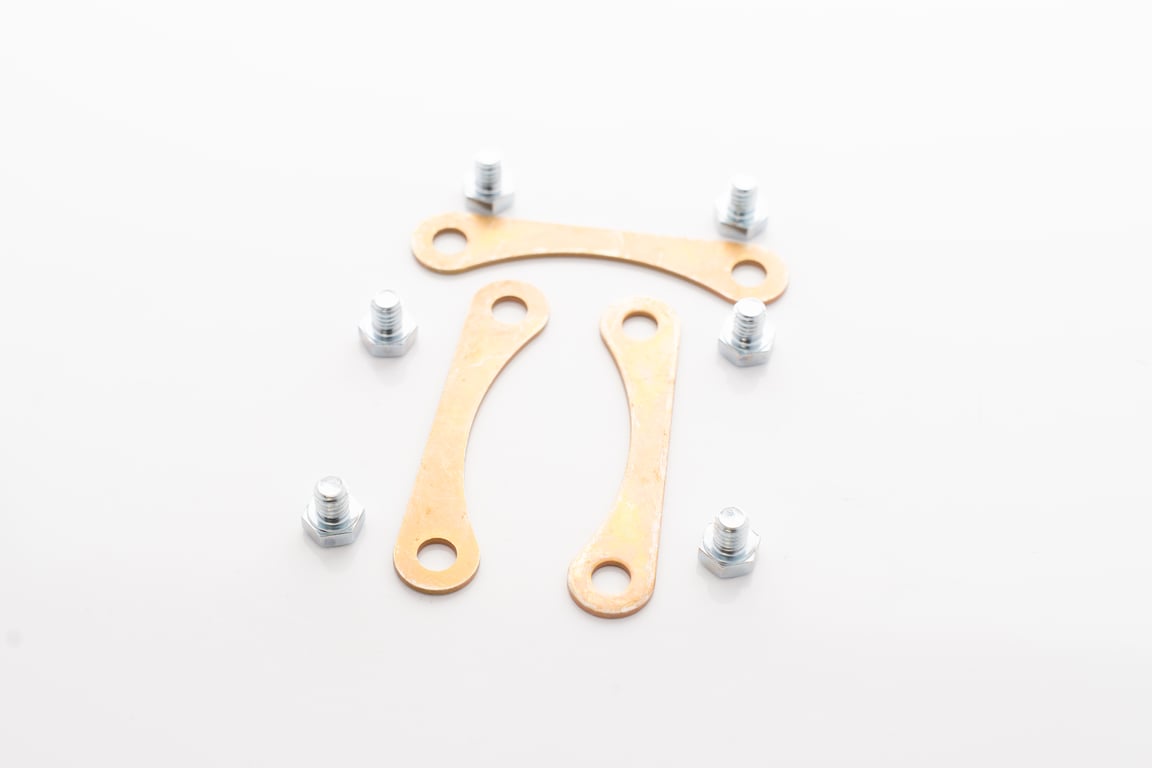 This clamp and bolt kit includes 3 clamps and 6 bolts and is used to hold Precision "S" compressor covers to the backing plate of the turbocharger. PTE Part Number: PTP070-1006