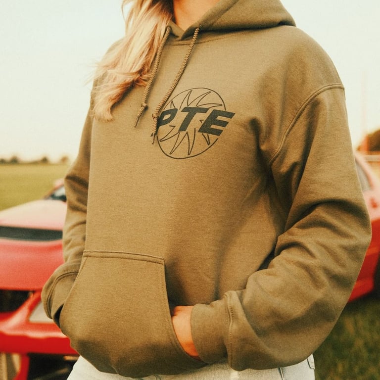 Our new military green hoodie drop is just in time for fall and features our iconic PTE logo in a simple and easy to wear design.