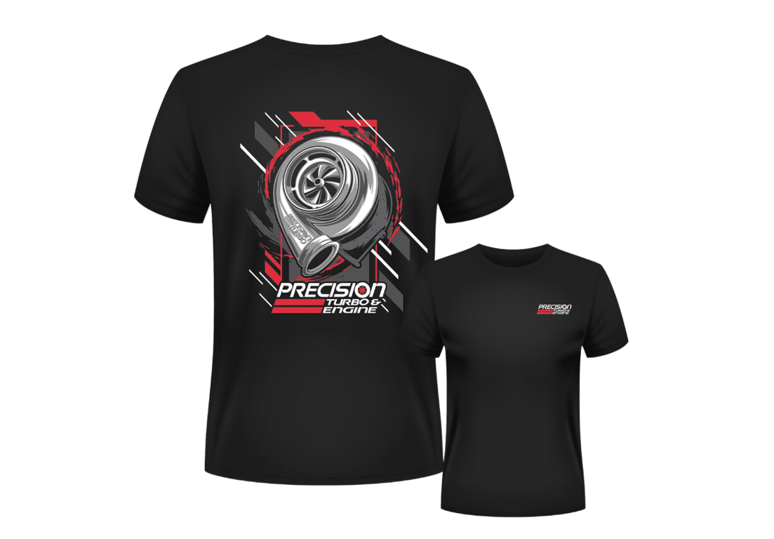You may not want people knowing exactly what you've got under your hood, but you've got Precision pride and like showing it off. Featuring our new Next Gen turbocharger technology image along with the Precision Turbo & Engine logo on the front. Our T-shirts are made from 100% pure cotton and are preshrunk to ensure a great fit. Heavy weight, durable and comfortable, a PTE tee should be the next "performance part" that you purchase for your wardrobe