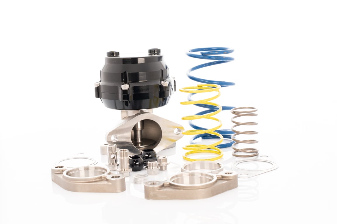Precision Turbo and Engine's high-quality yet economical PW39 39mm external wastegate is perfect for the automotive enthusiast looking to get the most from their turbocharged car, truck or any other vehicle. The 39mm Precision Turbo and Engine PW39 external wastegate features the following: High grade, high temperature stainless steel and billet aluminum components for the best in strength, style and fucntionality at an affordable price A 347 stainless investment cast valve body to provide consistent performance without fatigue or failure while also allowing for accurate boost control. An internal Nickel Chromium Alloy Valve 5 different 17-7 precipitation hardened springs for further adjustment of boost levels Standard boly-style flange configuration for easy mounting A satin black anodized finish with 6061 aluminum billet cap Stainless steel inlet and outlet flanges as well as all clamps necessary for installation The PTE PW39 external wastegate is designed to be a direct fit replacement for other units on the market and it compatible with most aftermarket manual or electronic boost controllers for ease of use. As an added bonus, all 39mm Precision Turbo PW39 wastegates are warranted to be free from manufacturers defect for a period of 12 months or 12,000 miles!