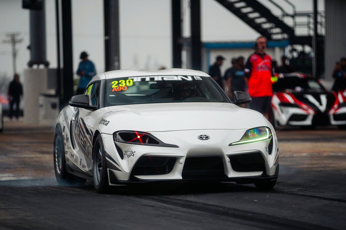 Titan Motorsports Supra jumps to the #2 spot in the A90 Supra rankings with a solid 7.86 @ 177.30mph running our Next GEN 7275 turbocharger @ TX2K 2024. Pretty impressive results from an H cover turbo. The car is running a Titan Motorsports 3.2L B58 engine package with a Titan Motorsports turbo kit. The transmission is a Pure Drivetrain Solutions Stage 3 w/ convertor and runs a CSF Race “X” intake manifold. Congratulations to everyone involved in this build. #precisionturbo